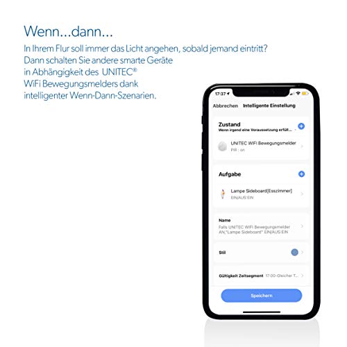 Specification: Unitec WIFI bewegingsmelder infrarood | melding op smartphone | WLAN-waarschuwingsmelder – geen gateway nodig | werkt op…