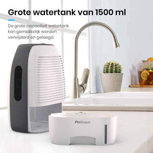 Pro Breeze Elektrische Luchtontvochtiger, Compact en Draagbaar, 1500ml Watertank voor Vocht, Schimmel, Vocht in Huis…