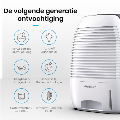 Specification: Pro Breeze Elektrische Luchtontvochtiger, Compact en Draagbaar, 1500ml Watertank voor Vocht, Schimmel, Vocht in Huis…