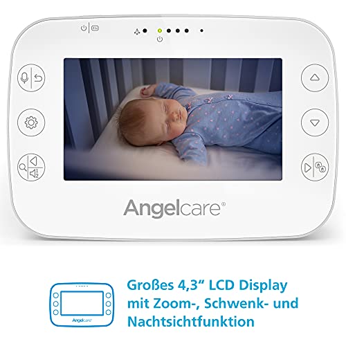 SmartSensor Pro 3: 3-in-1 babybewaking video + audio + beweging met twee draadloze sensormatten De beschermengel in de kinderkamer ® De SmartSensor Pro 3 combineert de prestaties van een hoogwaardige videobabyfoon met een gevoelige bewegingsbewaking en combineert daarmee alle belangrijke bewakingsfuncties in één apparaat. De twee zeer gevoelige sensormatten onder de matras registreren op het gehele ligoppervlak de kleinste bewegingen, zelfs de adembewegingen van de baby. Als er langer dan 20 seconden geen adembeweging wordt geregistreerd, wordt Angelcare® alarm geactiveerd. * Tot de bijzondere kenmerken van de SmartSensor Pro 3 behoren onder andere een kamertemperatuurbewaking en een intelligente camerabevestiging. Mobiele ontvanger met extra groot display. Een extra groot lcd-display van 11 cm en de zoom-, zwenk- en nachtzichtfunctie zorgen voor een uitstekende beeldoverdracht. Bovendien kan de ontvanger met de meegeleverde accu mobiel worden gebruikt. Dit maakt de ouders een flexibele en tegelijkertijd permanente video-, audio- en bewegingsbewaking mogelijk. De 2 sensormatten met de nieuwe Angelcare® Sens-A-Sure technologie garanderen een betrouwbare ademhalingsbewaking over het gehele ligoppervlak van het kinderbed. Doordat de 2 sensormatten zich onder de matras bevinden, heeft de baby geen storend direct contact met het bewakingsapparaat. * Angelcare® mag NIET bij risicokinderen worden gebruikt, omdat de bewaking onder een arts toezicht moet worden uitgevoerd door middel van een medische thuismonitor (via elektroden op het lichaam van het kind). Intelligente camerabevestiging: om een optimale kijkhoek van het kind te garanderen, kan de camera met de standaard worden neergezet of met behulp van een magnetische bevestiging comfortabel en eenvoudig boven het kinderbed aan de muur worden gemonteerd. Bij de levering inbegrepen: BasicLifeSupport Om ouders te weten wat er in een noodsituatie te doen, hebben wij onze Angelcare®-apparaten in samenwerking met de GEPS-NRW e.V. (Gemeenschappelijk ouderinitiatief plotselinge Kindstod NRW – Münster) ontstane brochure “BasicLifeSupport – handleiding van levensreddende onmiddellijke maatregelen op de leeftijd van baby’s uitgerust.