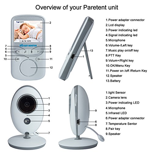 Specification: HMILYDYK Babyfoon Draadloze Video 2.4 inch Lcd scherm Smart Camera met Baby Lullaby Nachtzicht Temperatuur Monitoring 2…