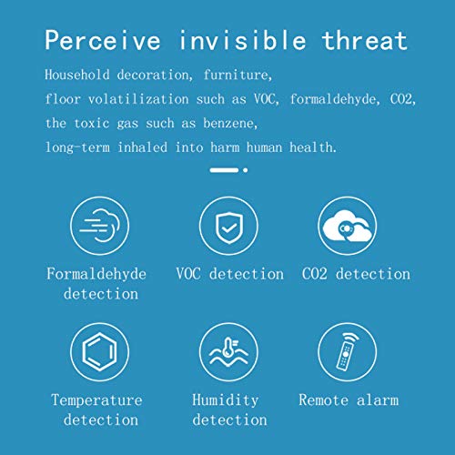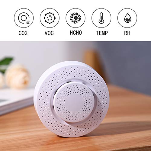 [5 in 1 parameterbewaking]: de slimme balg kan 5 omgevingsparameters detecteren, zoals formaldehyde, giftige gassen, vluchtige organische stoffen, CO2, temperatuur, vochtigheid, enz., En automatisch slimme huisairconditioners, nieuwe ventilatoren, luchtbevochtigers, luchtreinigers benchmarken , en De thuisomgeving is geoptimaliseerd