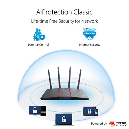 Bescherming voor je thuisnetwerk: levenslang gratis AiProtection gebaseerd op Trend Micro – stopt de bedreigingen voor de veiligheid van het internet voor al je aangesloten intelligente apparaten. Verhoogt de capaciteit en de efficiëntie: ondersteunt niet alleen MU-MIMO, maar ook de OFDMA-technologie om de kanalen efficiënt te lokaliseren en tegelijkertijd met meerdere apparaten te communiceren