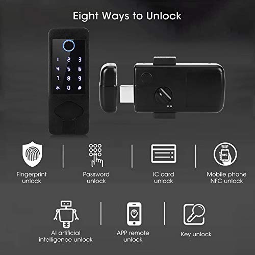 Verborgen sleutelgaten, verbeteren effectief de beveiliging, voorkomen dat dieven sloten openen. ncrypted intelligence, IC-kaartontgrendeling, gemakkelijke toegang voor mensen die niet handig zijn voor het invoeren van vingerafdrukken, en kan worden ontgrendeld door NFC van de mobiele telefoon.