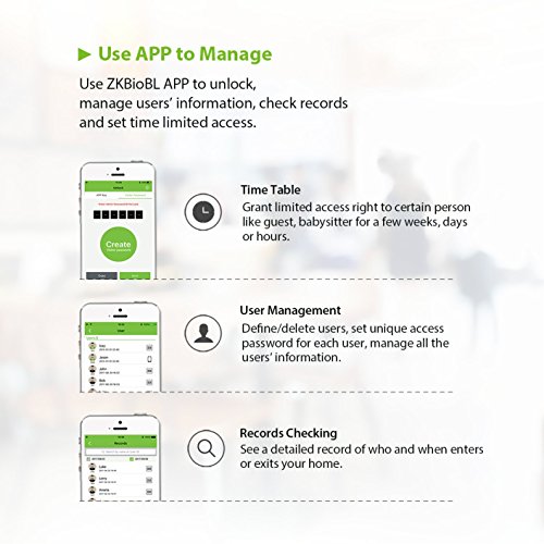 Specification: ZKTeco TL400B Vingerafdruk Biometrisch Deurslot met APP Digitale Keyless Bluetooth Sloten Smart Home Entry + 5 stks RFID…