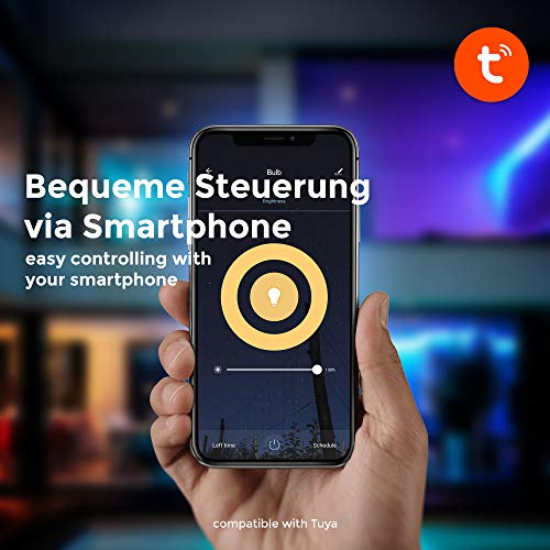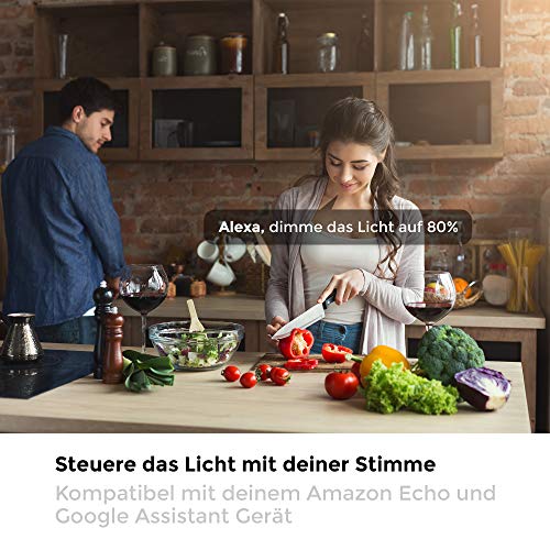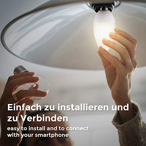De LED-verlichting heeft een wattage van 5,5W en genereert een lichtintensiteit van 470 lumen. Een E14-contactdoos zorgt voor flexibel gebruik in uw verlichting in de woonkamer, slaapkamer, eetkamer, gang, kinderkamer, gang of keuken.De slimme WLAN-lampen zijn compatibel met uw iOS- en Android-smartphone of -tablet. Daarnaast is spraakbesturing ook mogelijk