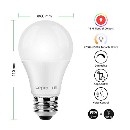 Specification: LE Smart WLAN ledlampen E27 gloeilamp dimbaar 8,5W 806LM, intelligente multicolor meerkleurige lamp 2700-6500K…